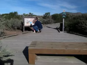 A boardwalk over stunted California Live Oaks with wonderful views of Morro Rock and the bay below.