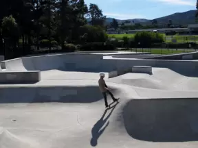 A pretty park with imaginative playground, lawn, amazing skatepark with a wave, basketball/roller derby court, and shady picnic areas. Currently a crime problem.