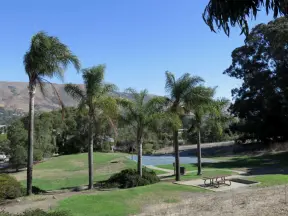 Scenic location with views of Avila Beach, on a lawn and river beach where kids can run and play.