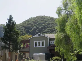 Lovely neighborhood walk past sweet houses and gardens, near fragrant hills with eucalyptus and wildflowers, plus a playground and lawn.