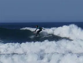 A walk along a clifftop to a popular surfing area with gorgeous sand dunes and exotic plants.