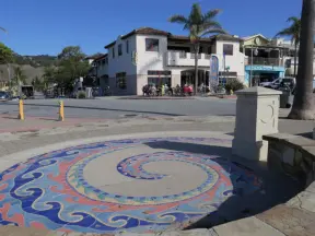 Special area of Balboa Park with adobe buildings, mesquite trees, and brightly colored tiles on the ground. Heart sculpture, and SD Gem Museum. Plus, the wonderful carousel!