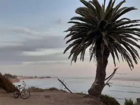 Beautiful dunes, cold breezes, hundreds of palms, a bike path, and a huge pirate playground.