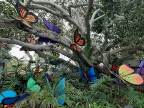 A small museum set in a Spanish-style building by a creek, with a netted garden of 1,000 butterflies in the summer.