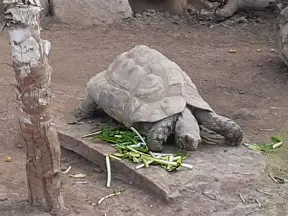 Zoo with mostly monkeys, where you walk in a cage to feed the monkeys that roam free, and you can see four short animal shows amongst gorgeous vegetation.