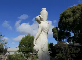 Glorious gardens with classical statues, fountains, topiaries, reflecting pools with bronze sculptures, flowers, orangerie, and secret groves.
