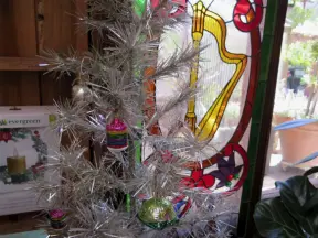 Hotel inside a giant atrium with tropical plants, fish, alligators, and decorations. ICE sculpture event in December.