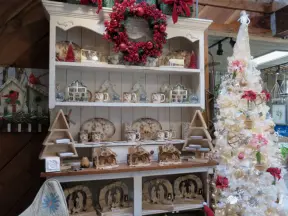 Garden in a sunny, sheltered spot, with cottage with turret under redwood trees, Buddhist gazebo, goats, and flowers galore! Seasonal pumpkins and Christmas market!