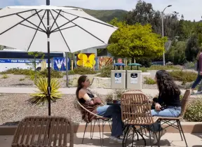 Gorgeous outdoor mall near UC San Diego, with lots of public spaces, cafes, and even a huge outdoor climby for kids.