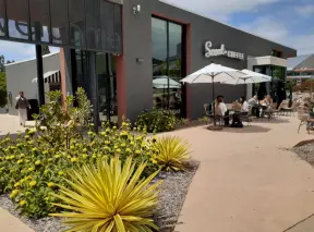 Coffee shop, food court, ice cream and pastry shops, brewery, gift shop and market, outdoor public spaces with fire pit and tables and selfie spots galore, farm with donkeys, goats, and alpaca! Also called San Luis Ranch.