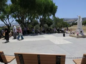 Shady walk among eucalyptus trees. Peaceful! Plus a cute playground tucked in a corner at the end.
