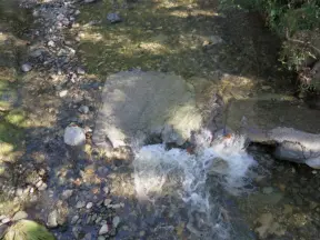 Beach that is like a dream! Crystal clear river leading to the ocean and huge white rocks.