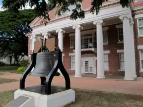 Historic buildings, sunny quad where students hang out, flowers and old trees, and fun student center area.