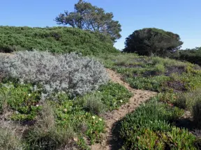 Wonderful wooden boardwalk over the dunes, with gorgeous views of the sea! Plus eucalyptus forest. You can walk 1.7 miles in total!