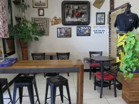 Coffee shop and cafes, plus a dedicated bike path that runs for 1.1 km from Dinosaur Caves Park to the elementary school.