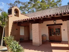 Picture-perfect rose gardens, below a grassy green hill across the street from where the Santa Barbara Mission stands.