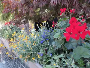 A sophisticated European-style development with shops, cafes, fountains, gorgeous architecture, and the most amazing flower baskets!
