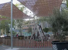 Super fun playground with adorable trees. Every imaginable play structure.