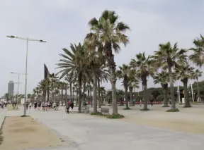 A flat, straight beach with a wide boardwalk where fitness reigns supreme! It reminded me of Venice Beach in California.