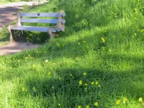 Pretty beach with 1km walking path on the cliffs and gigantic sloped lawn.