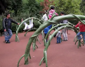 Super fun playground with adorable trees. Every imaginable play structure.