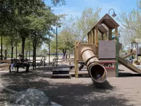 A super fun playground with a giant space net, carousel, pony rides, train rides, and dog-friendly hiking and bike trails around a lake.