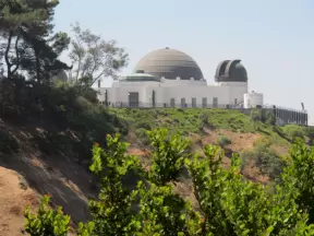 Art Deco observatory perched on a hill above LA with views of the iconic Hollywood sign, the downtown skyline, and the greater LA basin.