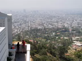 Art Deco observatory perched on a hill above LA with views of the iconic Hollywood sign, the downtown skyline, and the greater LA basin.