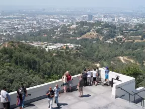 Art Deco observatory perched on a hill above LA with views of the iconic Hollywood sign, the downtown skyline, and the greater LA basin.