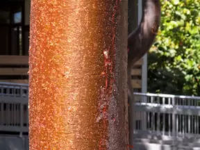 Incredible old trees from all over the globe, a stream, tropical plants, and flowers, all on a sloped plot of land.