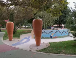 A pretty park with imaginative playground, lawn, amazing skatepark with a wave, basketball/roller derby court, and shady picnic areas. Currently a crime problem.