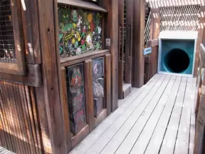 Amazing wooden playground with splash pad and gizmos galore, plus carousel and free science museum, all in a tropical setting.