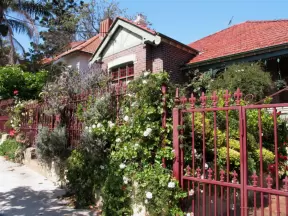 Lovely little walk past flower-covered archways and Casa Feliz historic mansion.