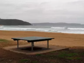 Colorful pirate playground by the sea, with lovely clean sand below the structure, right next door to the small but fun Central Coast Aquarium.