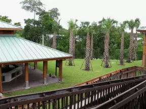 Nature center with sea life in huge tanks (you can't see inside because you are held back by railings), and boardwalk through jungle to observation tower.