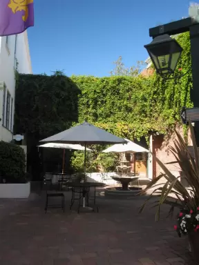 SB Public Market is a hip indoor space with cafes, and outdoor seating by a Spanish courtyard with views of quaint Victoria Court.