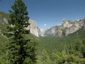 Breathtaking side-on view of half dome, three waterfalls, and the entire stunning valley.