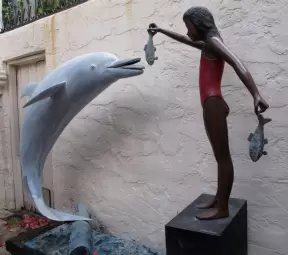 Cement ship playground with logs to climb, seal, dolphin, whale's tail and giant octopus sculptures, picnic tables, and an amazing view of Morro Rock and the inlet.