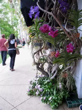 A sumptuous street with Spanish archways and courtyards and unique shops for the extremely rich.
