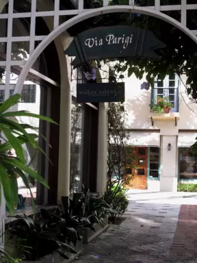 A sumptuous street with Spanish archways and courtyards and unique shops for the extremely rich.