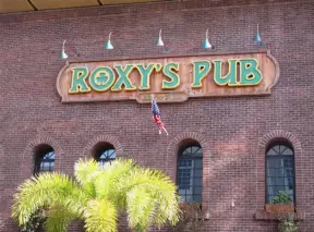 Main strip of West Palm Beach, with colorful and inviting architecture and decorations.