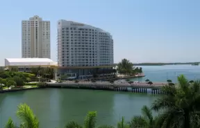 Fantastic, wide running path for 1.5 miles, along the river on the mainland, over the bridge, and all around Brickell Key. Very dense city atmosphere.