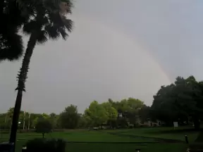 Whitest white sand, clear sparkling water, spacious green lawns with large shade trees, tropical flowers, a wide half-mile boardwalk, and a huge park full of tropical plants.