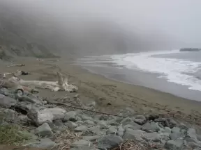 Stunning, foggy grey-sanded beaches with wild deadly surf and high headlands.
