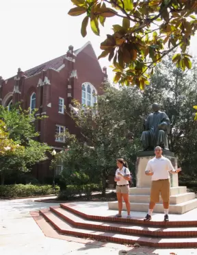 An exciting-feeling university on a gorgeous campus loaded with moss-draped oak trees and tons of shade.