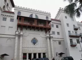 Beach with boardwalk, playground, magical mansion, and kayak rentals to kayak to sea caves, plus cafes nearby.