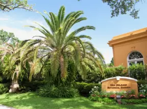 Small, gorgeous park with old trees, tropical plants, flowers, roses, and a pond with koi and turtles.