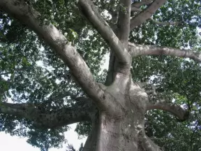 Gorgeous walk under banyan trees past side streets with lush gardens and mansions.
