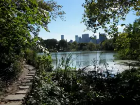 A park of exquisite beauty, with flowering trees and a picnic lawn fronting a pond full of turtles and koi.