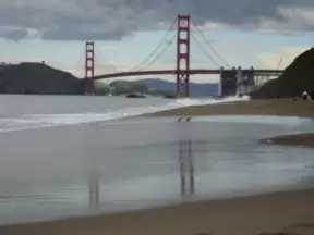 Picnic tables, amphitheater, gift/coffee shop, and wharf, under the Golden Gate Bridge!